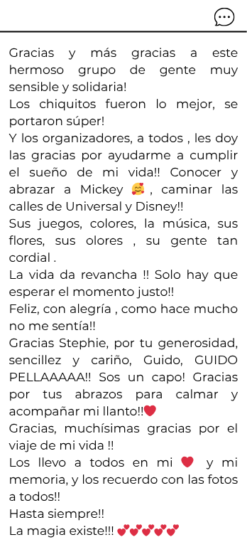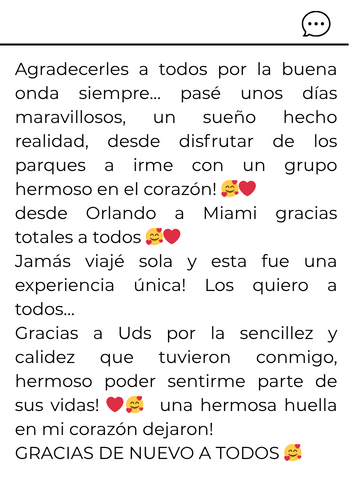 Vení a vivir Disney y Universal de una manera única, conmigo, con un grupo que se convierte en familia y con recuerdos que vas a contar toda la vida.